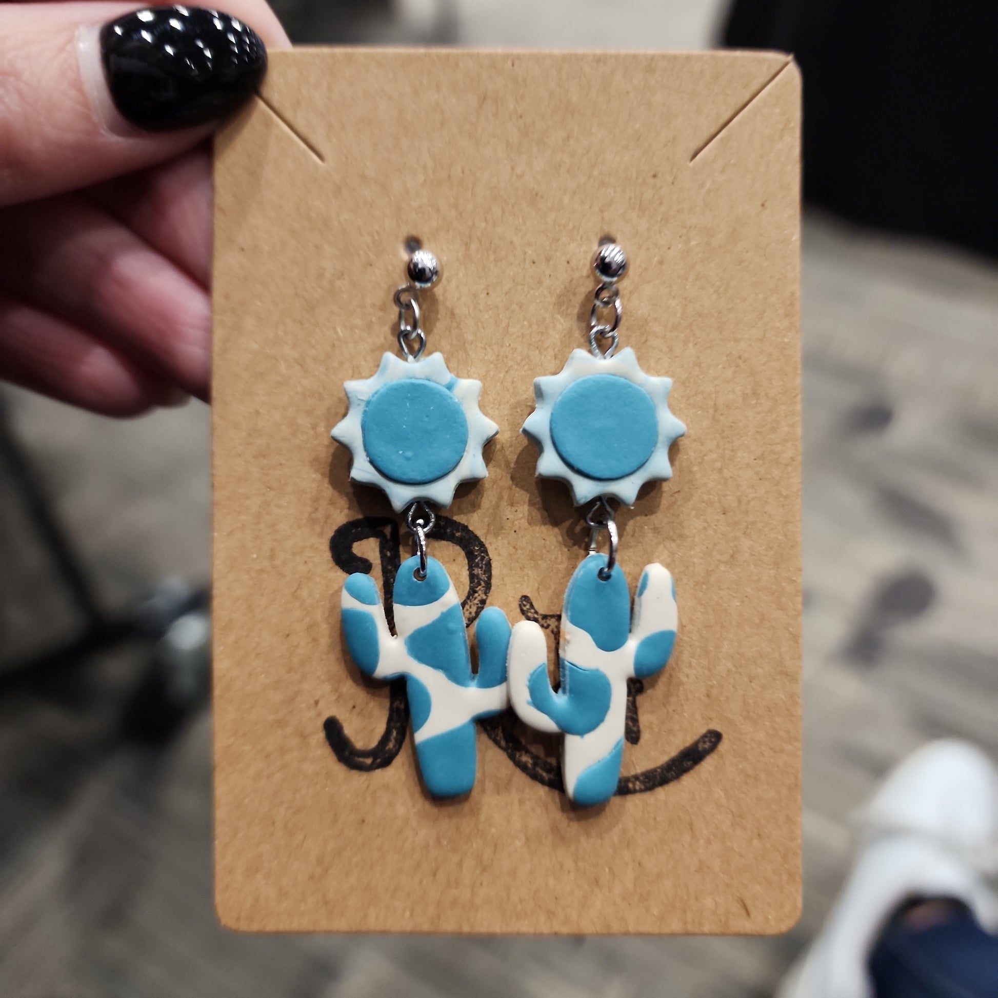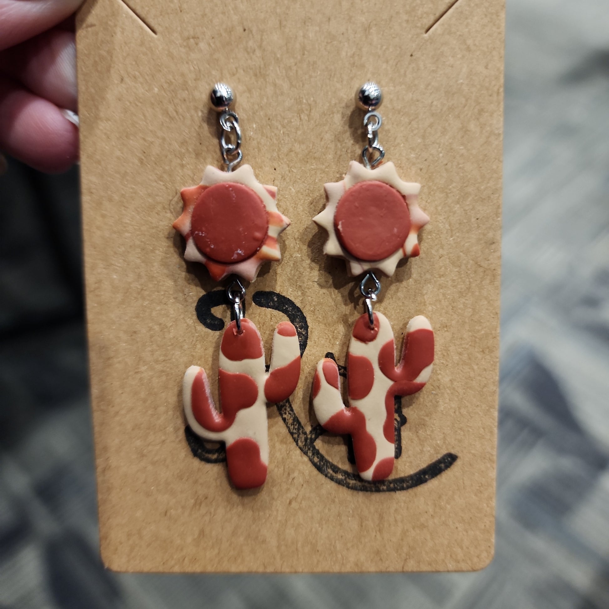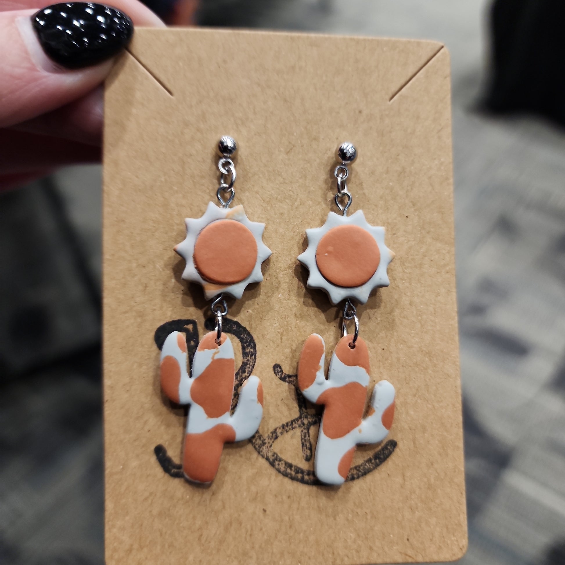 Embrace the desert vibes with our Desert Sunset earrings! These quirky dangle earrings feature a playful design of cacti under the sun. Perfect for adding a touch of fun to any outfit. (No prickly feelings, we promise!)
