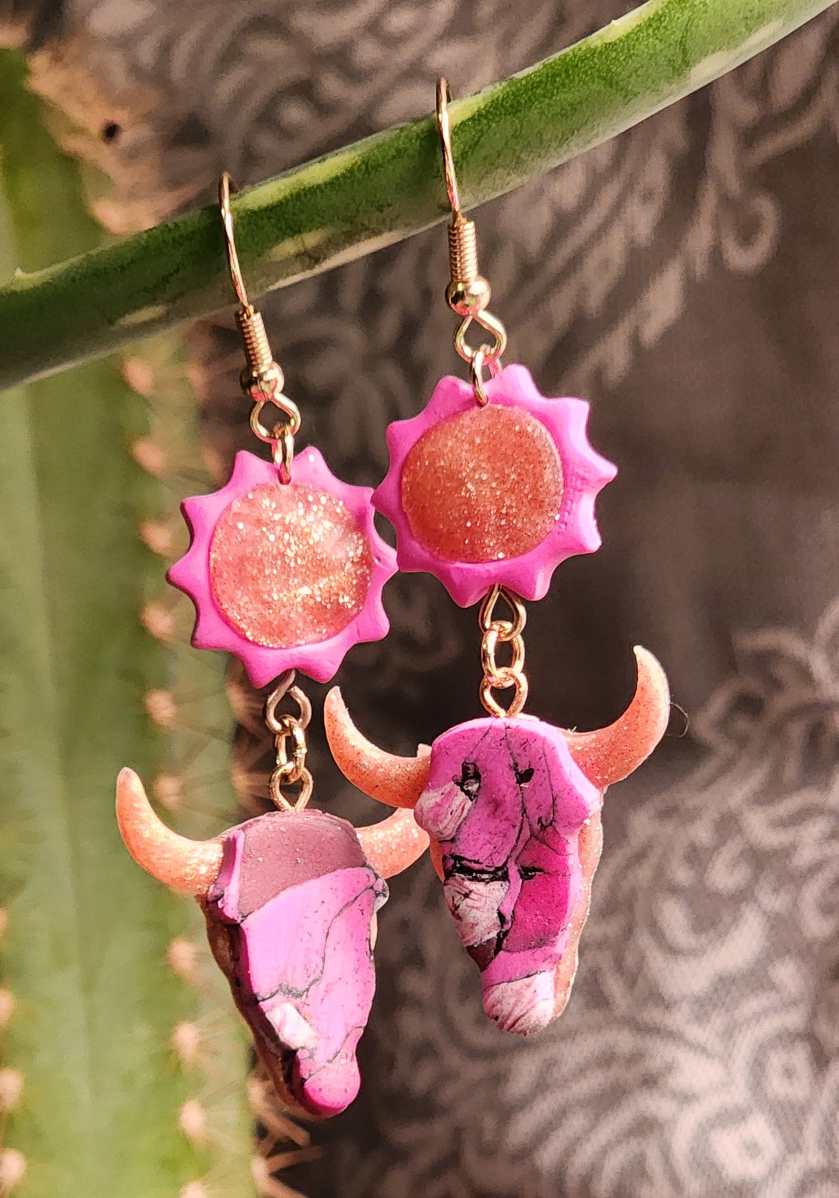 Add some wild western flair to your look with our Longhorn Desert Sun earrings. Featuring a playful steer head dangle, these quirky earrings are perfect for those who don't take themselves too seriously. Yeehaw!