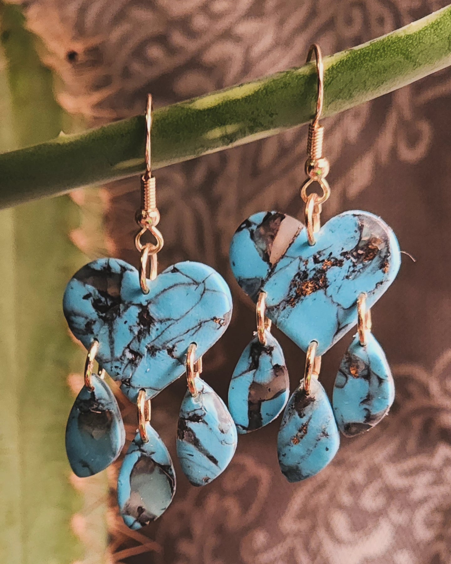 Get ready to fall head over heels for these Navajo Heart drop dangle earrings. Made with a faux turquoise look, they'll add a touch of Southwest charm to any outfit. So cute, you'll want to wear them every day!